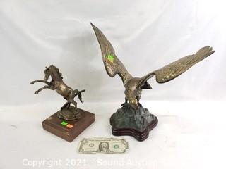 Lot #0204: Bronze or Brass Eagle & Horse Sculptures