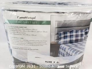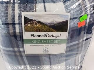 Lot #0304: Flannel From Portugal 4pc King Sheet Set