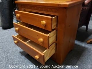 Lot #0010: Natural Pine Stained Finish 3 Drawer Nightstand