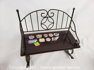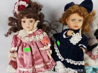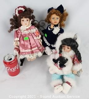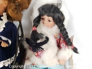 Lot #0133: 3 Porcelain Dolls & Rocking Bench