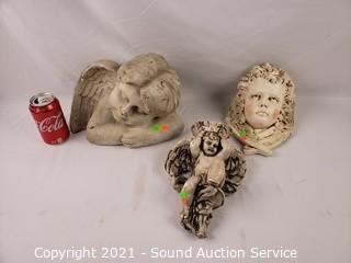 Lot #0096: 3pc Vintage Cherub Chalk Busts, Sculptures