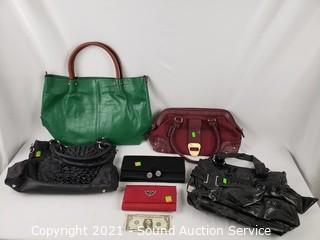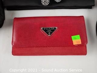 Lot #0106: 5 Ladies Handbags, Purses, Clutches & Prada Wallet