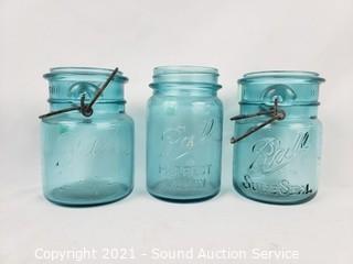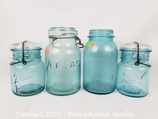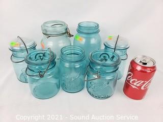 Lot #0145: 7 Vtg. Quart & Pint Blue Ball & Atlas Jars