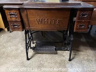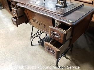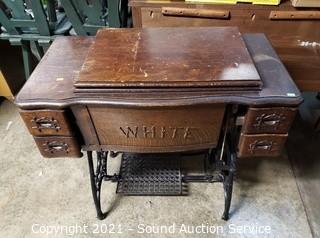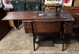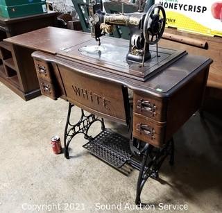 Lot #0066: Antique White Rotary Treadle Sewing Machine