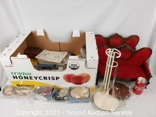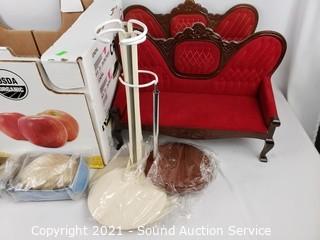 Lot #0044: Assorted Doll Furniture, Stands & Wigs
