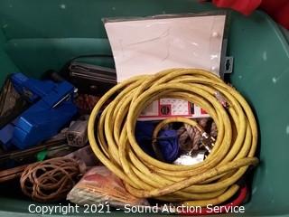 Lot Details: Air hose, rope, clothes & more. Refer to photos for lot contents.