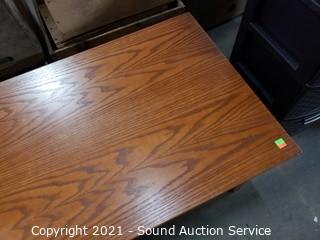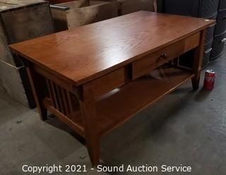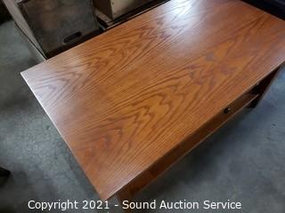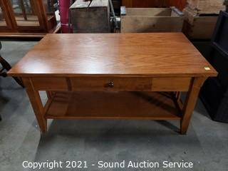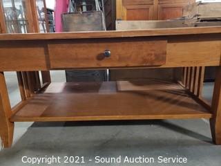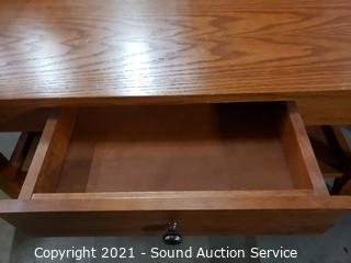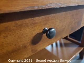 Lot #0032: Medium Finish Oak Single Drawer 2-Tier Table