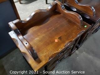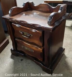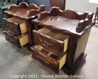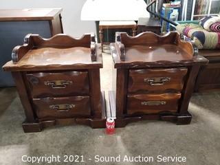 Lot #0047: Pair of Vintage Dark Stained 2-Drawer Nightstands