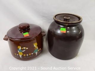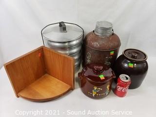 Lot #0175: Pottery Crocks, Stacking Bento & Drink Jug