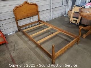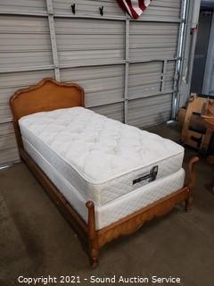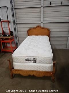 Lot #0222: Twin Bed w/Maple Frame, Mattress & Box Spring
