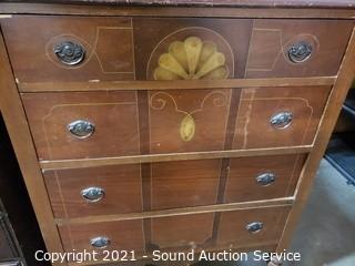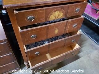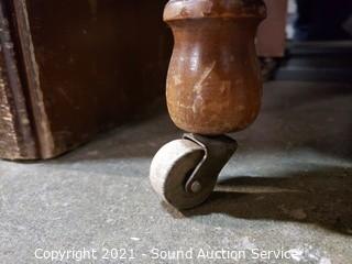 Lot Details: Various wear to the finish. 43.5" x 34" x 18". On wood casters. Matches the next lot.