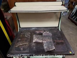 Lot Details: Various wear, comes with some extra pieces and handles, not sure where they go on the stove. One hinge on oven door is broken,, other doors functioning as intended. Overall 53" x 35" x 26".