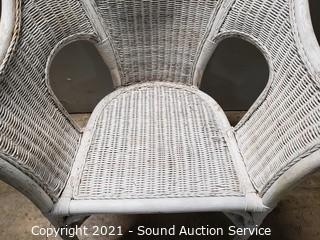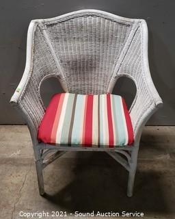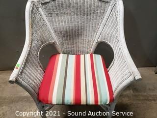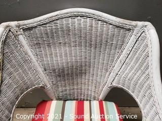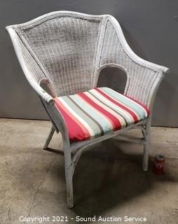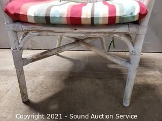 Lot Details: Some wear, chips in the paint. Comes with seat cushion. 35" x 25", 18" to seat.