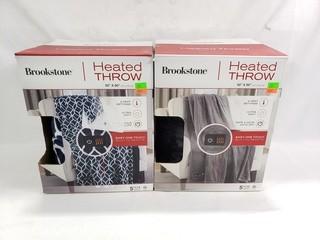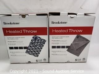Lot #0291: 2 Brookstone Heated Plush Blue/Wht & Gray Throws