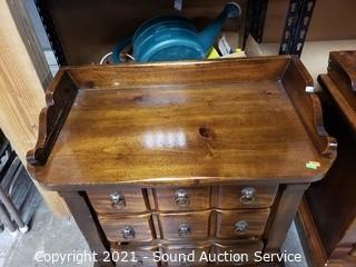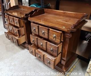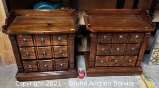 Lot #0006: 2 Dark Stained 3-Drawer Nightstands