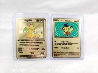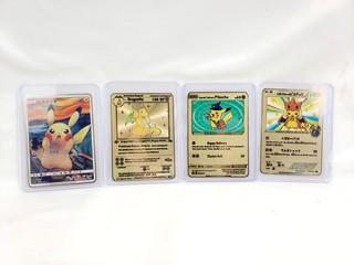 Lot #0302: 3 Pikachu & 1 Dragonite Gold Replica Pokemon Cards