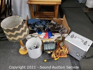 413 Lots including; Nice Oak bedroom Set, Dark Stained Bedroom Set, Vtg. French Provincial 8 Drawer Vanity Dresser, Nice Free Standing Wardrobe Mirror, La-Z-Boy Beige Fabric Sofa w/Throw Pillows, Kay Swivel Rocking Armchair, Sealed Collectibles Diecast Stock Cars, Vintage Royal Typewriter, Assorted Copper Serviceware, 86pc Majesty Fine China w/Storage Cases, Spent Reloading 7mm & 303 Brit Casings, Some Beautiful Gold & Silver Jewelry (14k Gold & Diamond Set Ring, 14k Gold Bracelets & More), Cherry Finish Queen Canopy Bed w/Step, lawn & Garden Tools & Care, Yard Art Decor (Stake, Shepard hooks, Trellises & More), Nice American Legacy Acoustic Electric Guitar, Some Nice Brass Finish & Solid Brass Furniture, Collectible Trading Cards, Various Interior Accent Decor, Artwork, Kenmore Upright Freezer, Signed Icefire Studio Art Glass & So Much More!!!