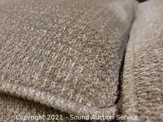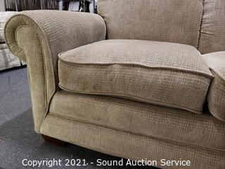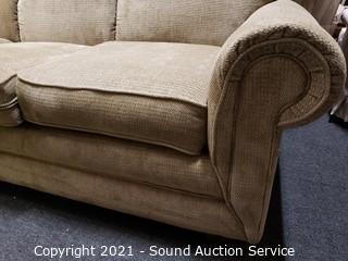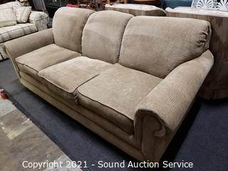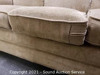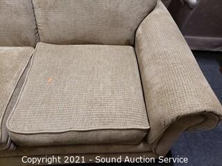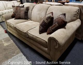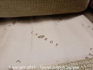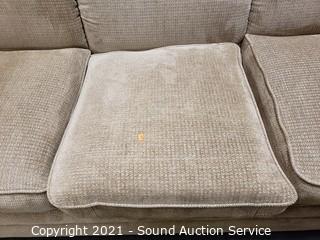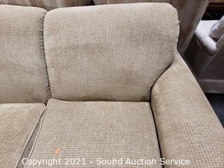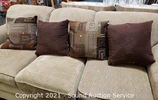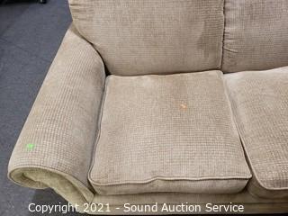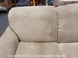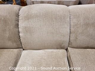 Lot #0021: La-Z-Boy Beige Fabric Sofa w/Throw Pillows