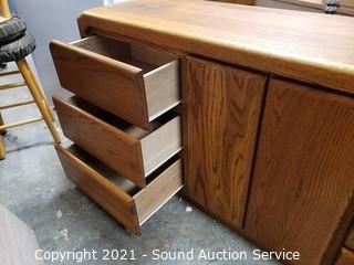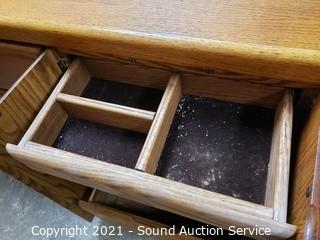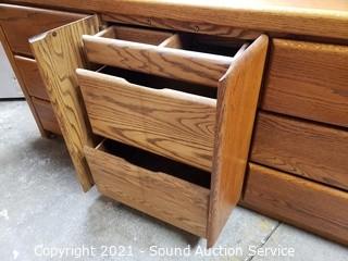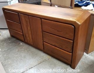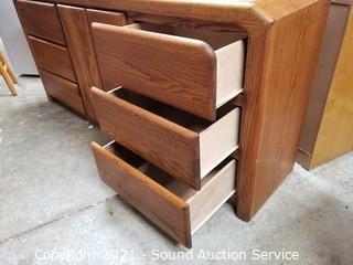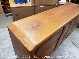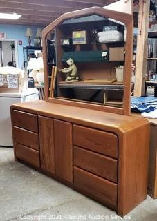 Lot #0003: Nice Oak Arbek 9 Drawer Mirrored Vanity Dresser