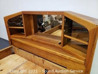413 Lots including; Nice Oak bedroom Set, Dark Stained Bedroom Set, Vtg. French Provincial 8 Drawer Vanity Dresser, Nice Free Standing Wardrobe Mirror, La-Z-Boy Beige Fabric Sofa w/Throw Pillows, Kay Swivel Rocking Armchair, Sealed Collectibles Diecast Stock Cars, Vintage Royal Typewriter, Assorted Copper Serviceware, 86pc Majesty Fine China w/Storage Cases, Spent Reloading 7mm & 303 Brit Casings, Some Beautiful Gold & Silver Jewelry (14k Gold & Diamond Set Ring, 14k Gold Bracelets & More), Cherry Finish Queen Canopy Bed w/Step, lawn & Garden Tools & Care, Yard Art Decor (Stake, Shepard hooks, Trellises & More), Nice American Legacy Acoustic Electric Guitar, Some Nice Brass Finish & Solid Brass Furniture, Collectible Trading Cards, Various Interior Accent Decor, Artwork, Kenmore Upright Freezer, Signed Icefire Studio Art Glass & So Much More!!!