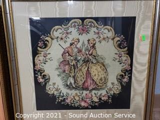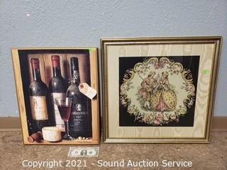 Lot #0261: Vtg. Wine Giclee Print & Embroidery Victorian Art