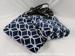 Lot #0276: 2 Brookstone Blue & White Plush Heated Blanket
