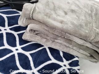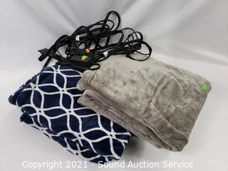 Lot #0292: 2 Brookstone Gray & Blue Heated Plush Throws