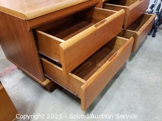 390 Lots including; Sun Cabinet Co. MCM Teak Bedroom Set, Vintage Marble Top Mirrored Hall Tree Coat Rack, Red Leather Furniture, Vintage Philco Tube Radio Cabinet, Vintage Oak 3-Drawer Secretary Desk, Beautiful Dragonfly Stained Glass Floor Lamp, Rustic Cabriole Leg Dining Table w/4 Chairs, EZ-3 SX 21-Speed Tricycle, Carboy Glass Jugs, Assorted Artwork, Unique Table Lamps, Vintage & Crystal Perfume Bottles, Pine Chest, White Wicker Dresser & Nightstand, Corner Cabinet, Nice Brown Leather Tufted Wingback Chair w/Ottoman, Nordic Stressless Pushback Recliner, Vintage Fine Glassware & China, Wet Suits, Miscellaneous Lego's, 61pc Royal Doulton Vogue Fine China Dish Set, Royal Albert Old Country Rose Place Settings, 40pc Towle 1988 Sterling Silverware Set, Laminate Wood Flooring & So Much More!!!