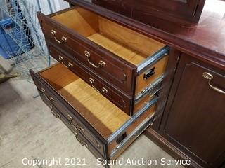 390 Lots including; Sun Cabinet Co. MCM Teak Bedroom Set, Vintage Marble Top Mirrored Hall Tree Coat Rack, Red Leather Furniture, Vintage Philco Tube Radio Cabinet, Vintage Oak 3-Drawer Secretary Desk, Beautiful Dragonfly Stained Glass Floor Lamp, Rustic Cabriole Leg Dining Table w/4 Chairs, EZ-3 SX 21-Speed Tricycle, Carboy Glass Jugs, Assorted Artwork, Unique Table Lamps, Vintage & Crystal Perfume Bottles, Pine Chest, White Wicker Dresser & Nightstand, Corner Cabinet, Nice Brown Leather Tufted Wingback Chair w/Ottoman, Nordic Stressless Pushback Recliner, Vintage Fine Glassware & China, Wet Suits, Miscellaneous Lego's, 61pc Royal Doulton Vogue Fine China Dish Set, Royal Albert Old Country Rose Place Settings, 40pc Towle 1988 Sterling Silverware Set, Laminate Wood Flooring & So Much More!!!