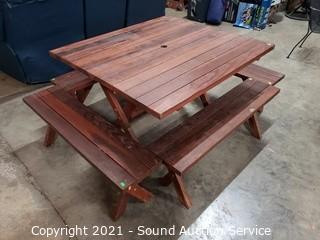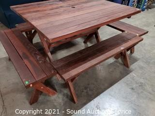 Lot #0363: Nice Wooden Picnic Table & Bench Set