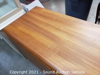 390 Lots including; Sun Cabinet Co. MCM Teak Bedroom Set, Vintage Marble Top Mirrored Hall Tree Coat Rack, Red Leather Furniture, Vintage Philco Tube Radio Cabinet, Vintage Oak 3-Drawer Secretary Desk, Beautiful Dragonfly Stained Glass Floor Lamp, Rustic Cabriole Leg Dining Table w/4 Chairs, EZ-3 SX 21-Speed Tricycle, Carboy Glass Jugs, Assorted Artwork, Unique Table Lamps, Vintage & Crystal Perfume Bottles, Pine Chest, White Wicker Dresser & Nightstand, Corner Cabinet, Nice Brown Leather Tufted Wingback Chair w/Ottoman, Nordic Stressless Pushback Recliner, Vintage Fine Glassware & China, Wet Suits, Miscellaneous Lego's, 61pc Royal Doulton Vogue Fine China Dish Set, Royal Albert Old Country Rose Place Settings, 40pc Towle 1988 Sterling Silverware Set, Laminate Wood Flooring & So Much More!!!