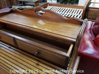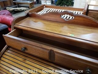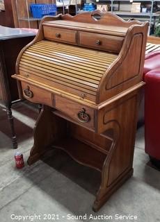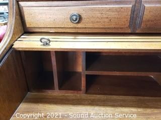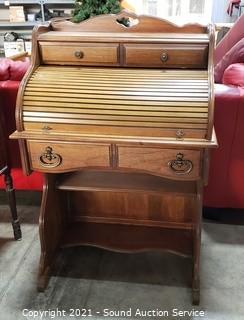 Lot #0023: Vintage Oak 3-Drawer Secretary Desk