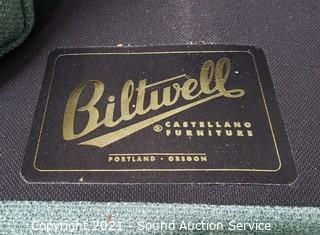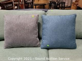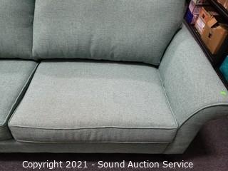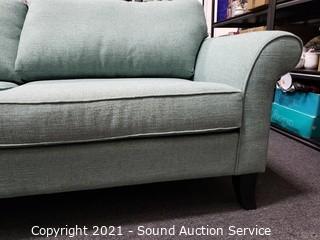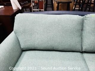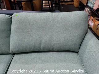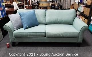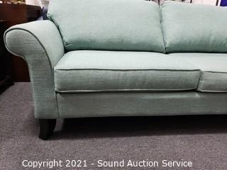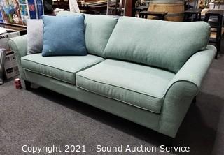 Lot #0042: Biltwell Teal Fabric Sofa w/Throw Pillows