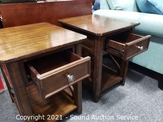 Lot #0043: Pair of Modern Dark Stain Side Tables