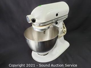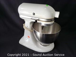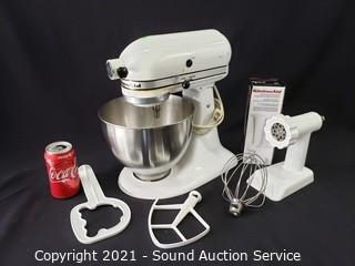 Lot #0010g: White KitchenAid Countertop Mixer w/Attachments