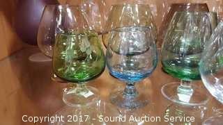Lot #0231: 21 Piece Colorful Crystal Brandy Snifters