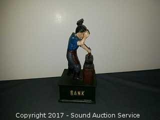 Lot #0195: Cast Iron Blacksmith Mechanical Coin Bank