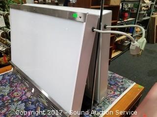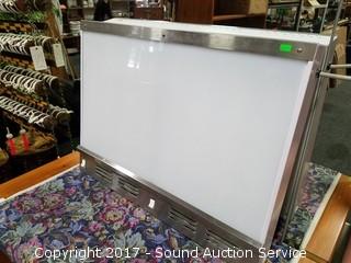 Each Side lights up independently. Approx. 22-1/4" tall, 28-3/4" wide 3" deep.
