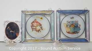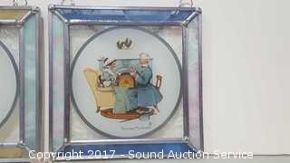 Lot #0232: Norman Rockwell Stained Glass & Porcelain Decor