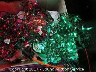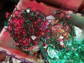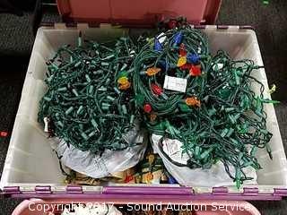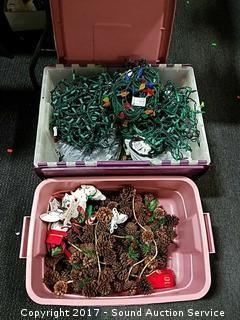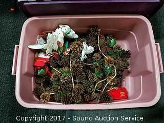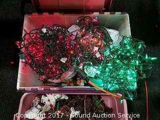 Lot #0079: Tote Loaded w/Christmas String Lights & Pine Cones