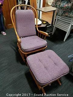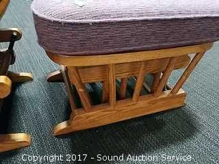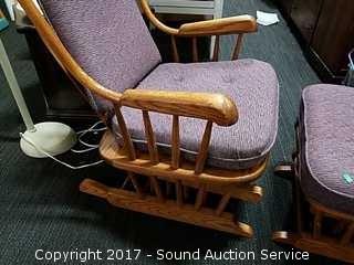 Lot #0157: Very Nice Solid Oak Gliding Rocker w/Ottoman