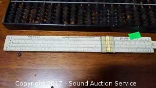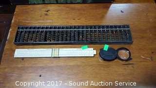 Lot #0152: Vtg. Slide Rule, Abacus And B&L Loop