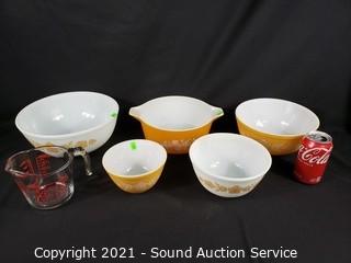 Lot #0235: 5pc Pyrex Mixing Bowl Set & 2-Cups Measuring Cup