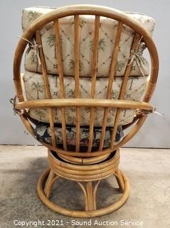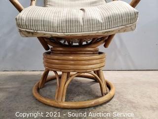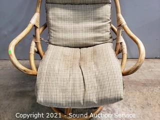 Lot #0006: Bent Bamboo Padded Swivel Rocking Chair