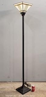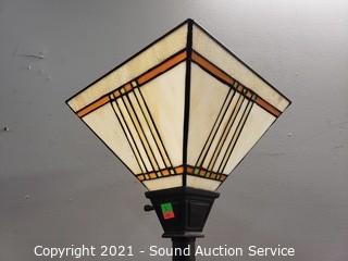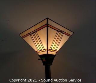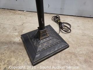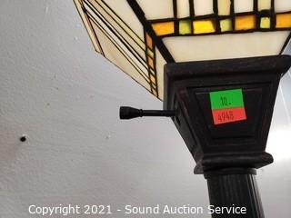 Lot #0010: Bronze Finish Stained Glass Shade Floor Lamp