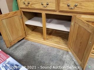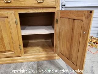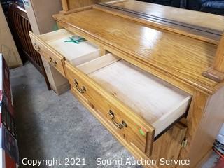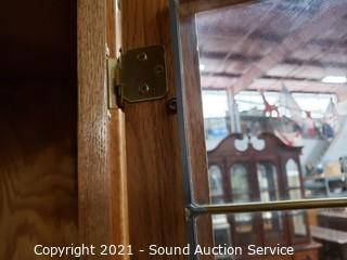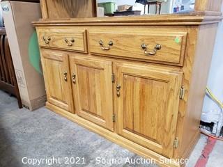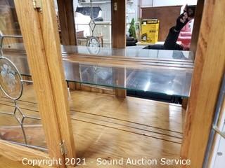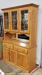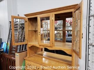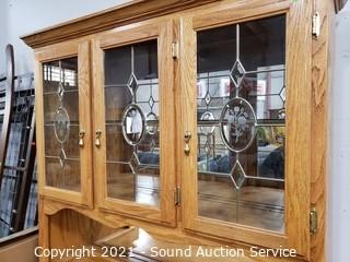 Lot #0162: Oak 2pc Mirrored Lighted Hutch
