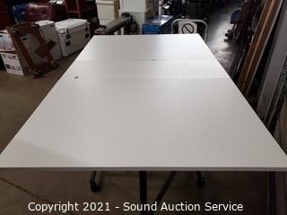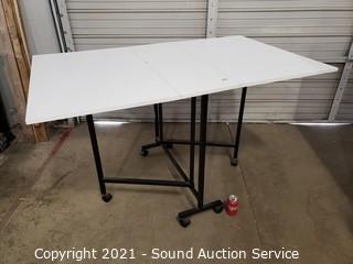 Lot #0233: Vintage Rolling Laminate Drop Leaf Task Table