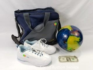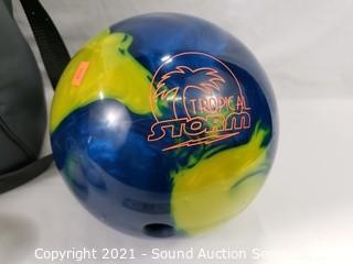 Lot #0093: Tropical Storm 9lb, 14oz Bowling Ball w/Shoes, Bag