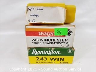 Lot #0299: 19rds .243 Ammunition & Various Casings