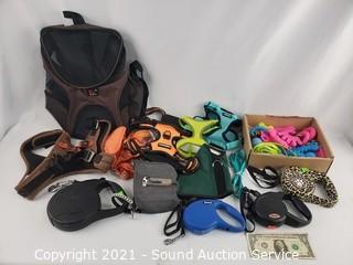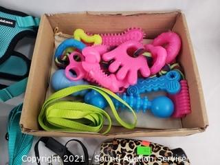 Lot #0219: 4 Retractable Pet Leashes, 6 Harnesses & Toys